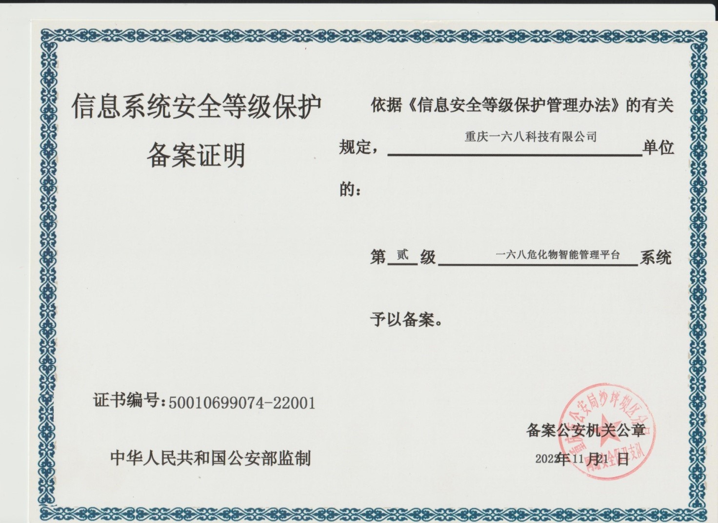 上圖:公安機關頒發的網絡信息安全登記備案證書